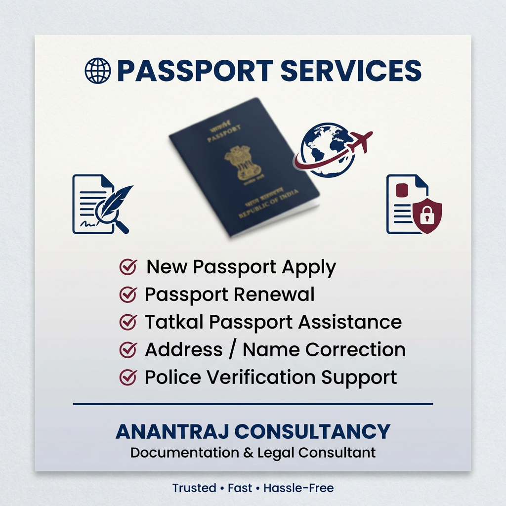 Schedule your appointment with Anantraj Consultancy Pvt Ltd for expert government document services in Delhi NCR and Ghaziabad. Get fast approvals for Aadhaar card, PAN application, passport services, driving license renewal, RC transfer, GST registration, income certificate, caste certificate, domicile, marriage certificate, notary, and RTO consultancy. Book now for reliable, personalized support and avoid delays in your legal documentation needs!